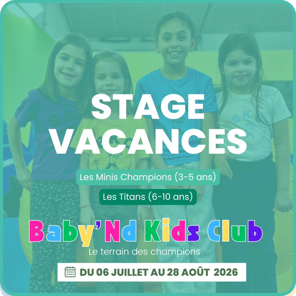 Le Baby’nd Kids Club propose des activités sportives pour les enfants de 3 à 10 ans pendant les vacances d’été, du lundi 6 juillet 2026 au vendredi 28 août 2026.. Encadrés par notre équipe d’éducateurs, les enfants découvriront différents sports de manière ludique grâce à des jeux adaptés à leur âge.