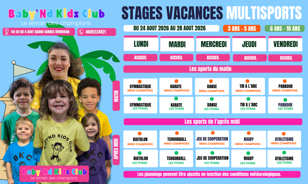 Nos stages vacances sont conçus pour permettre aux enfants de découvrir et pratiquer une multitude de sports dans un cadre dynamique, ludique et bienveillant.